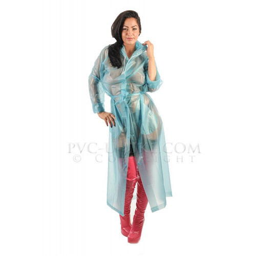 KLEMARO PVC Plastik - Mantel Regenmantel RA79ms BLT7 M Aquamarin-Blau halbtransparent - Auf Lager